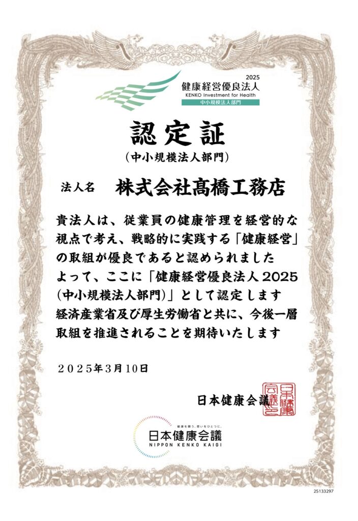 「健康経営優良法人2025(中小規模法人部門)」に認められました