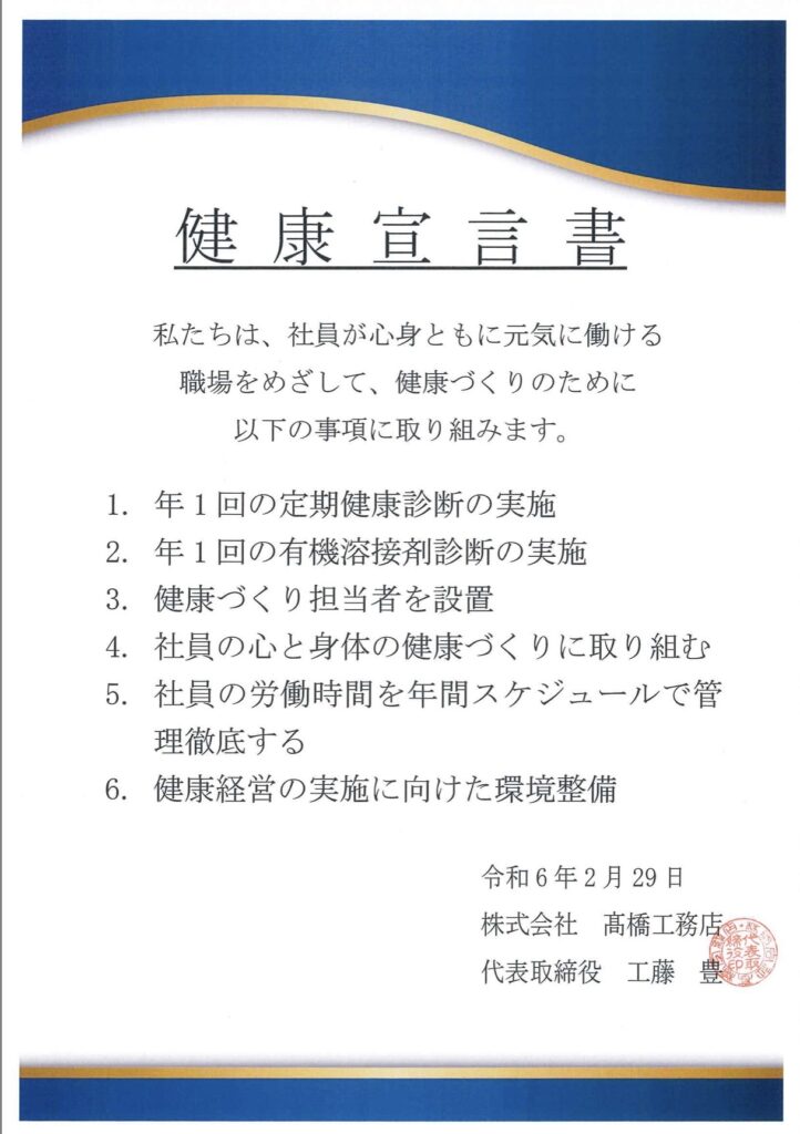 高橋工務店は健康宣言を致しました